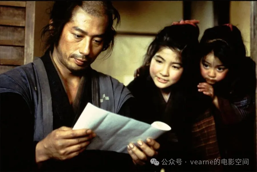 这部电影颠覆了传统武士片的刻板印象。山田洋次导演摒弃了激烈的暴力渲染,将镜头对准武士阶级的底层日常生活。影片中的清兵卫,既是勇猛的剑客,更是深爱家人、安贫乐道的普通人。真田广之的表演内敛而富有层次,将一个中年武士的苍凉与温情展现得淋漓尽致。宫泽理惠饰演的朋江温婉动人,两人之间的情感克制而深沉。电影在平淡中流淌着令人回味无穷的美感,探讨了时代洪流下个体的命运。清兵卫对女儿说:“也许读书不像学裁缝那么有用,读书使你有思考的能力,使你懂得思考,不论世道如何转变,只要能思考,就能生存下去。“这句话道出了真正的武士精神——不在于刀剑的挥舞,而在于内心的坚韧与对生命的坦然面对。